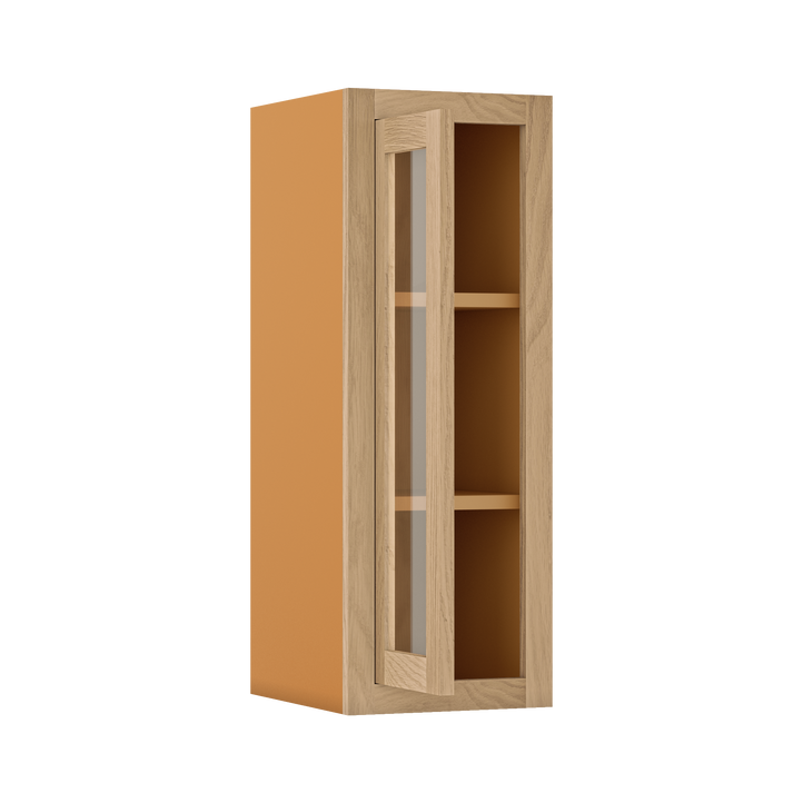 12" Wide Glass Ready Inset Oak Shaker Wall Cabinet - Single Door 9" to 42" Tall - Special Order