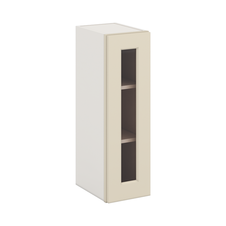 30" Tall Vanilla Cream Shaker 1-1/4" Overlay Wall Glass Cabinet - Single Door 9", 12", 15", 18", 21" WIde