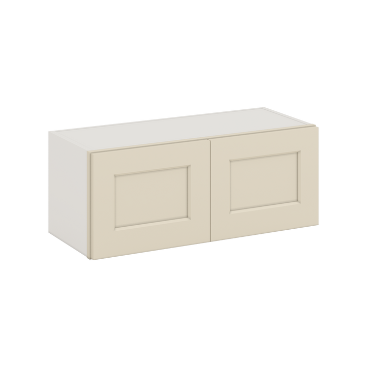 30" Wide Bridge Vanilla Cream Shaker 1-1/4" Overlay Wall Cabinet - Double Door 12", 15", 18", 21" & 24" Tall