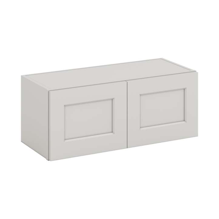 30" Wide Bridge 2WS White Shaker 1-1/4" Overlay Wall Cabinet - Double Door 12", 15", 18", 21" & 24" Tall