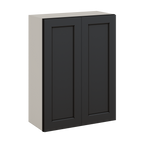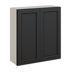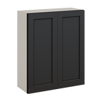 This double-door wall cabinet stands 36 inches tall and is built in a modern 15HNS Hermosa Noir Black Shaker overlay style. It offers expanded storage while maintaining a clean, elegant look. Ready to assemble and suitable for all kitchen layouts.