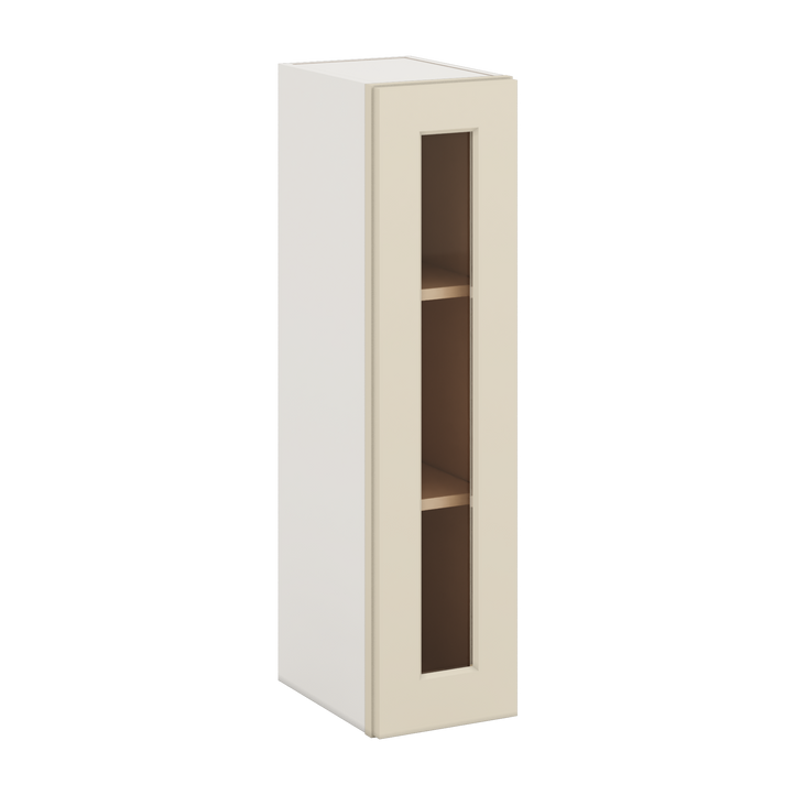 36" Tall Vanilla Cream Shaker 1-1/4" Overlay Wall Glass Cabinet - Single Door 9", 12", 15", 18", 21"
