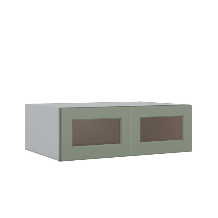 36" Wide 24" Deep Upper Green Shaker 1-1/4" Overlay Wall Glass Cabinet - Double Door 12", 15", 18", 21", 24"