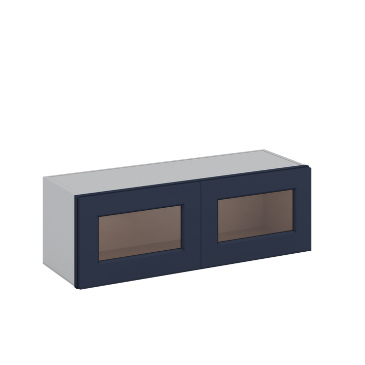 36" Wide by 12" Deep Bridge 29NB Naval Blue Shaker 1-1/4"Overlay Wall Glass Cabinet - Double Door 12", 15", 18", 21", 24" Tall