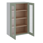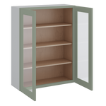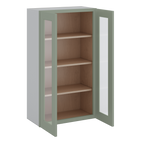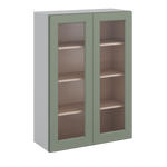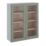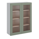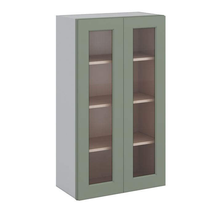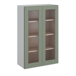 42" Tall Green Shaker 1-1/4" Overlay Wall Glass Cabinet - Double Door 24", 27", 30", 33", 36"