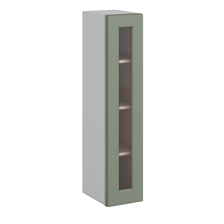 42" Tall Green Shaker 1-1/4" Overlay Wall Glass Cabinet - Single Door 9", 12", 15", 18", 21"