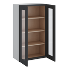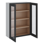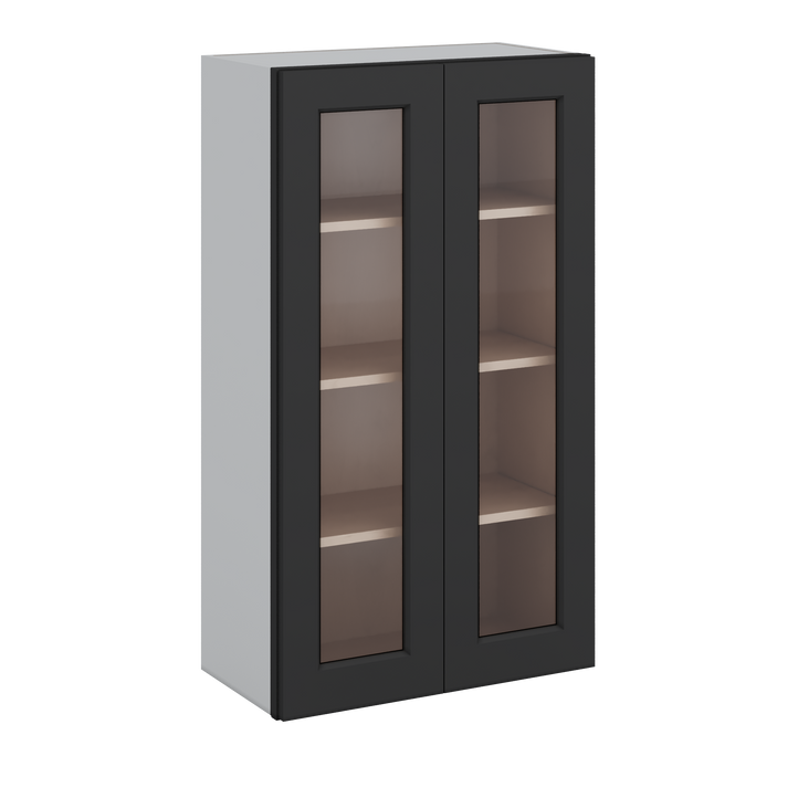 42" Tall Wall Cabinet 15HNS Hermosa Noir Black Shaker 1-1/4" Overlay Wall Glass Cabinet - Double Door 24", 27", 30", 33", 36"