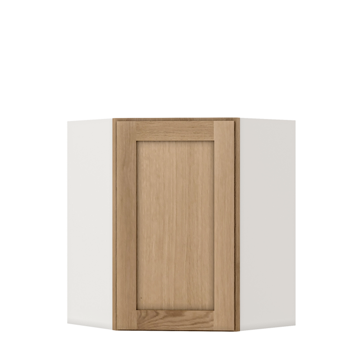Wall diagonal cabinet 24" wide by 24" available 30", 36", and 42" tall. 1-1/4" Overlay Natural 17ROS - Redondo White Oak Shaker diagonal wall kitchen cabinet RTA (Ready to Assemble).