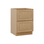 This Double Drawer cabinet is available in 24",  30" & 36" widths. It is a ready-to-assemble kitchen cabinet with a 1-1/4" Elegant Oak Craftsman Shaker overlay Solid Oak front shaker style.