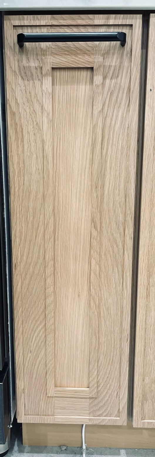 The front of the cabinet has an 1-1/4" Overlay-style face frame made of solid Oak Hardwood with the doors overlay the face frame by 1-1/4" each direction of the face frame. The cabinet sides, bottom, and top (boxes) are constructed of 1/2″ premium plywood. The face frames and doors are made from 100% Oak hardwood. All other exposed visible areas will require skin finish and trim where necessary.
