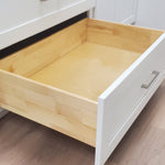 For added convenience, these cabinets come equipped with full extension, soft close undermount drawer glides by DTC (Click here for link) Model - D-Motion FGaceframe SS30B Full Extension Undermount Slides with Peg Lock, ensuring a smooth and quiet operation every time. The drawers themselves are constructed with solid birch wood and dovetail joinery, and it is recommended to add a small amount of glue when assembling.