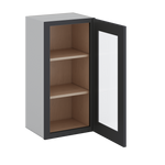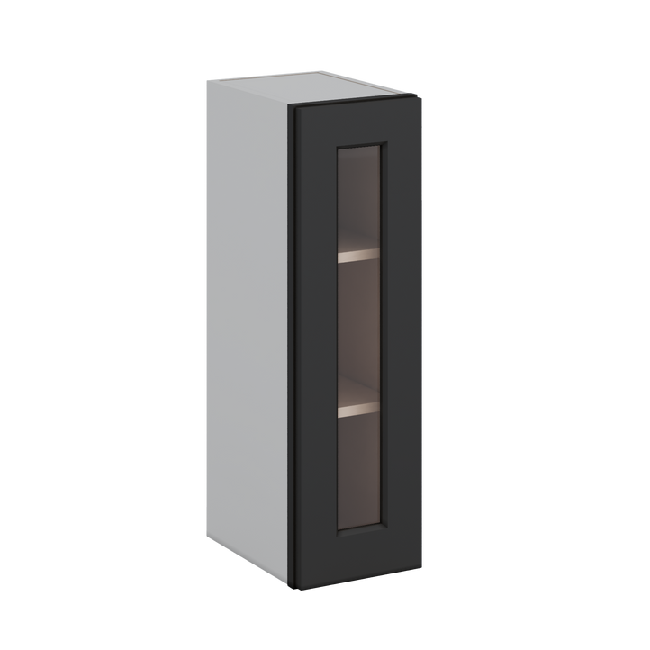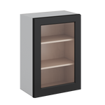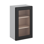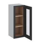 30" Tall 15HNS Hermosa Noir Black Shaker 1-1/4" Overlay Wall Glass Cabinet - Single Door 9", 12", 15", 18", 21" WIde