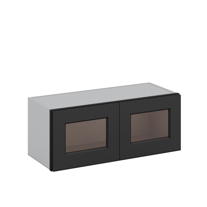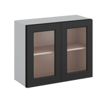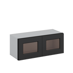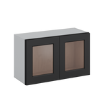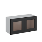 30" Wide Bridge 15HNS Hermosa Noir Black Shaker 1-1/4" Overlay Wall Glass Cabinet - Double Door 12", 15", 18", 21" & 24" Tall