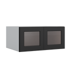 33" Wide Bridge 15HNS Hermosa Noir Black Shaker 1-1/4" Overlay Wall Glass Cabinet - Double Door 15" Tall - 24" Deep