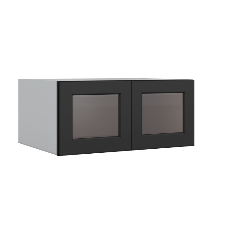 33" Wide Wall cabinet, 15" height by 24" deep. 15HNS Hermosa Noir Black Shaker 1-1/4" Overlay wall kitchen cabinet RTA (Ready to Assemble).