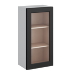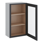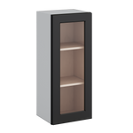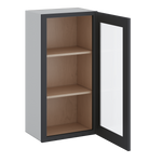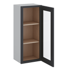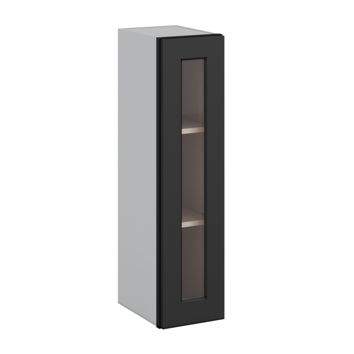 36" Tall 15HNS Hermosa Noir Black Shaker 1-1/4" Overlay Wall Glass Cabinet - Single Door 9", 12", 15", 18", 21"