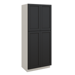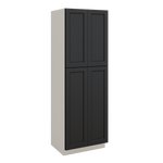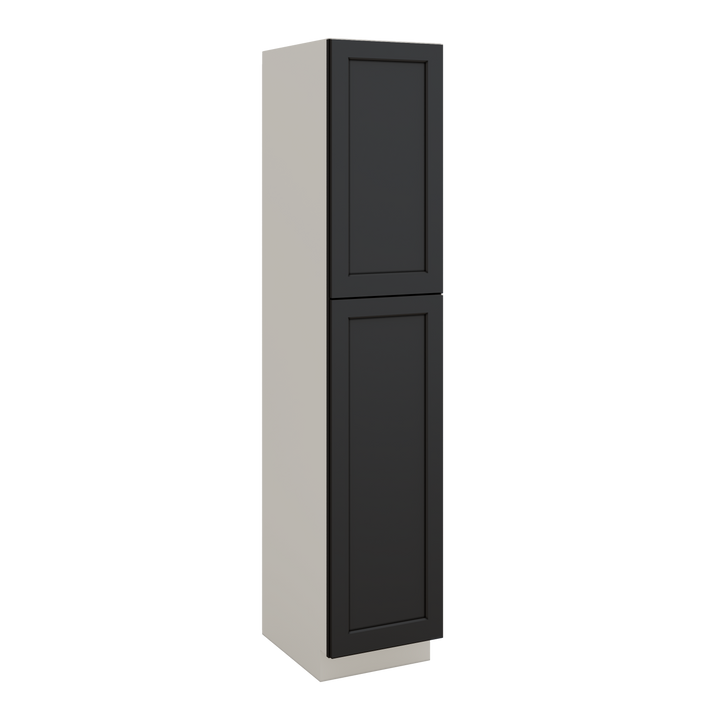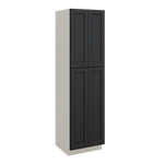 90 inch tall and 24 inch deep pantry cabinet in 15HNS Hermosa Noir Black Shaker style. Available in 18, 24, and 30 inch widths with soft-close doors and a solid construction.