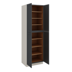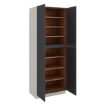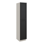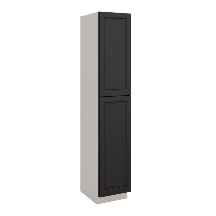 This 96 inch tall and 24 inch deep pantry cabinet is a towering storage solution in sleek 15HNS Hermosa Noir Black Shaker style. Available in multiple widths with adjustable shelves and soft-close hinges.