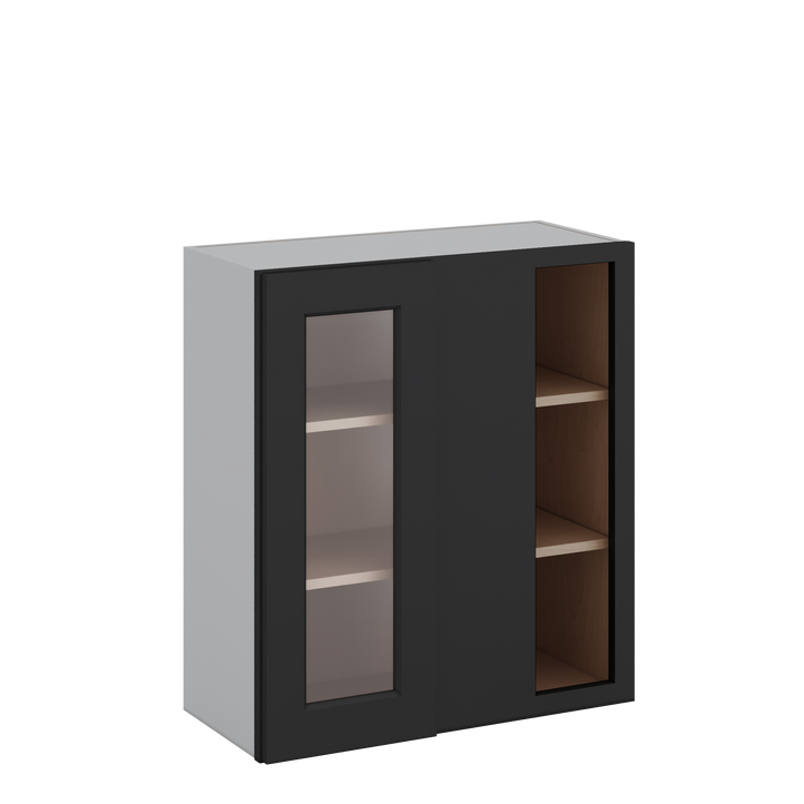 Blind Corner 15HNS Hermosa Noir Black Shaker 1-1/4" Overlay Wall Glass Cabinet (left or right) 27" Wide by 30", 36" or 42" Tall
