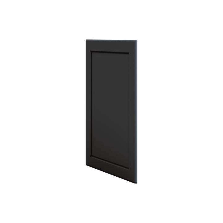 This decorative end panel elevates the look of exposed cabinet sides by adding a polished, finished appearance. It is easily installed and designed to match 15HNS Hermosa Noir Black Shaker style cabinetry.