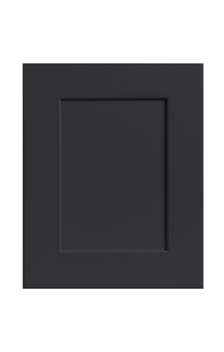 This sample door panel represents the 15HNS Hermosa Noir Black Shaker 1-1/4" overlay cabinetry design and is ideal for previewing the style and finish before full installation.