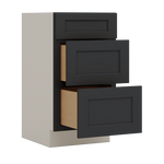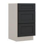 Our 15", 18" & 21" Vanity Drawer base cabinets are 21" deep and 34-1/2" tall in the 15HNS Hermosa Noir Black Shaker 1-1/4" Overlay style are the perfect addition to any bathroom remodel or new construction project.
