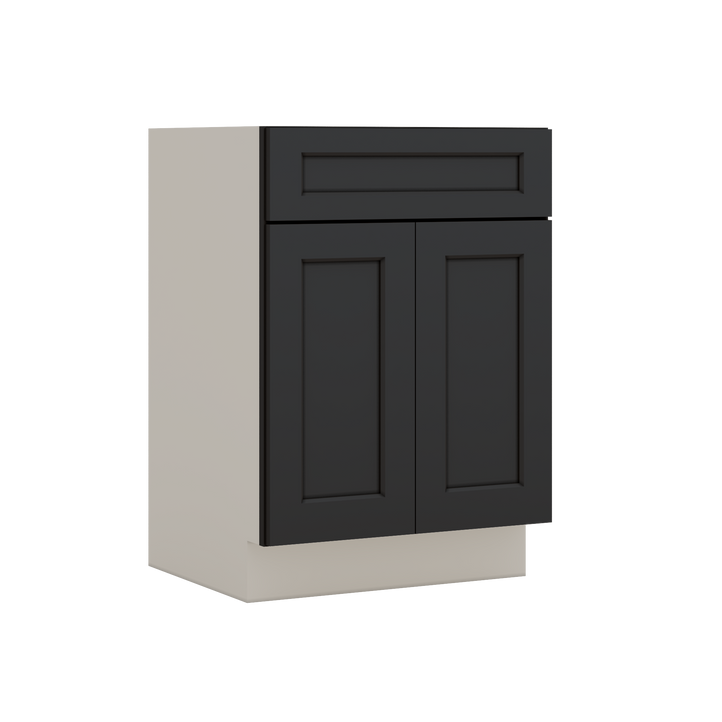 15HNS Hermosa Noir Black Shaker vanity sink base cabinets bring sleek style and storage to any bathroom remodel or construction project, with ample space and durable RTA design.