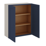 36" Tall 29NB Naval Blue Shaker 1-1/4" Overlay Wall Cabinet - Double Door 24", 27", 30", 33" & 36" Wide
