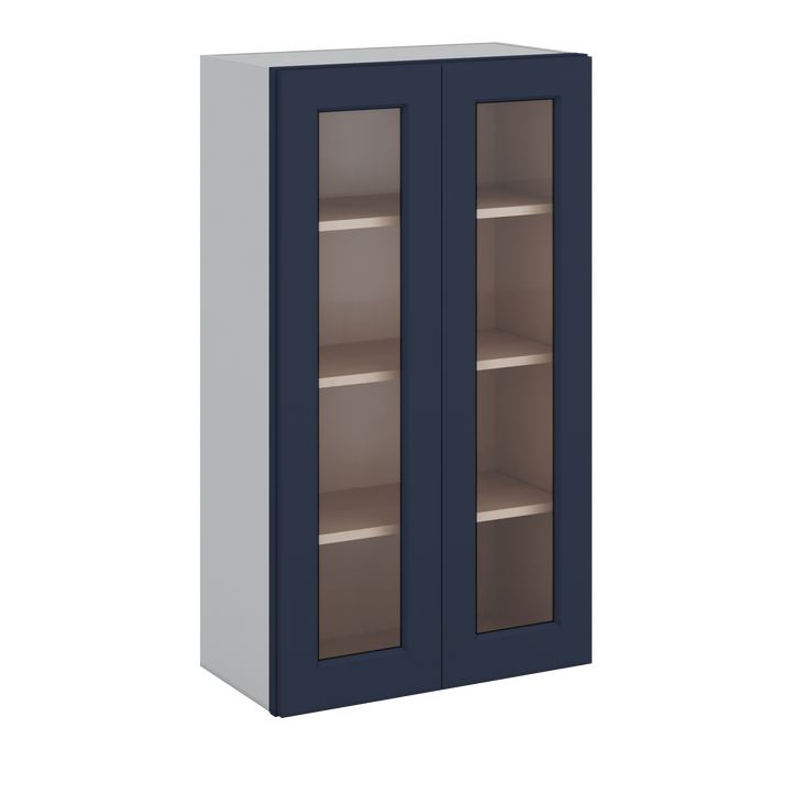 42" Tall 29NB Naval Blue Shaker 1-1/4" Overlay Wall Glass Cabinet - Double Door 24", 27", 30", 33", 36"