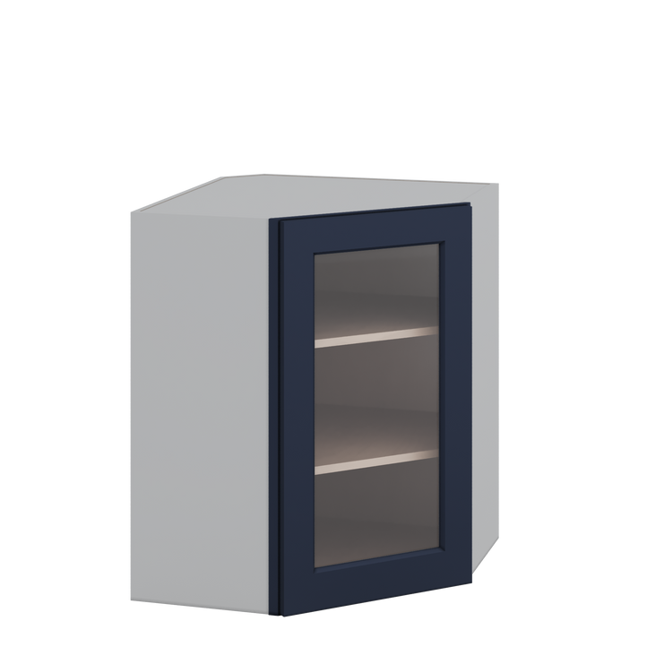 Diagonal Corner 29NB Naval Blue Shaker 1-1/4" Overlay Wall Glass Cabinet 24" Wide by 30", 36" & 42" Tall