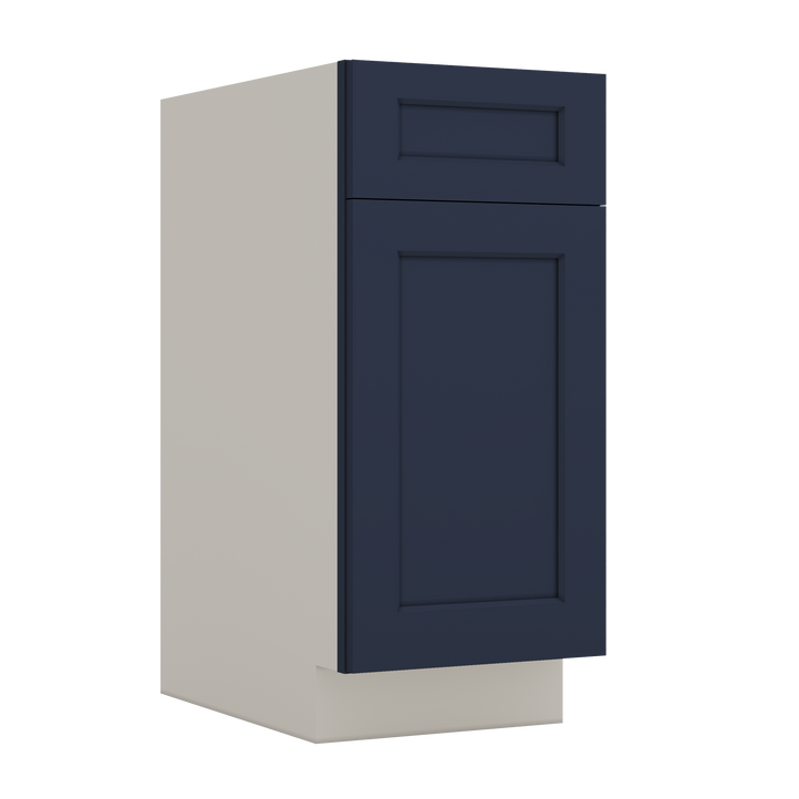 Our 29NB Naval Blue Shaker 1-1/4" Overlay base kitchen cabinets, the perfect addition to any kitchen remodel or new construction project. These cabinets are ready to assemble (RTA) and feature a single top drawer and lower section with two doors, providing ample storage space for all of your kitchen essentials.