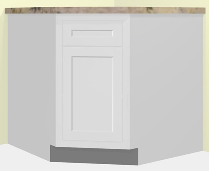 Custom Diagonal Corner Base cabinet 33", 36", 39", 42" wide by 24" deep by 34-1/2" tall. Custom Shaker base kitchen cabinet RTA.
