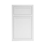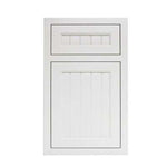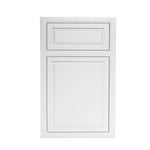 The face frames and door frames are all made of 100% Birch hardwood and custom paint with Oil Base UV Lacquer finish and the cabinet box and shelving are coated with a clear UV Lacquer protectant finish. Each cabinet door and drawer front is made of five pieces with tongue and groove joinery.. The cabinet door frames are 7/8" inches thick and are made of four separate pieces with tongue and groove joinery. The center panel is 1/4 inch thick oak plywood and inset into the door frame.