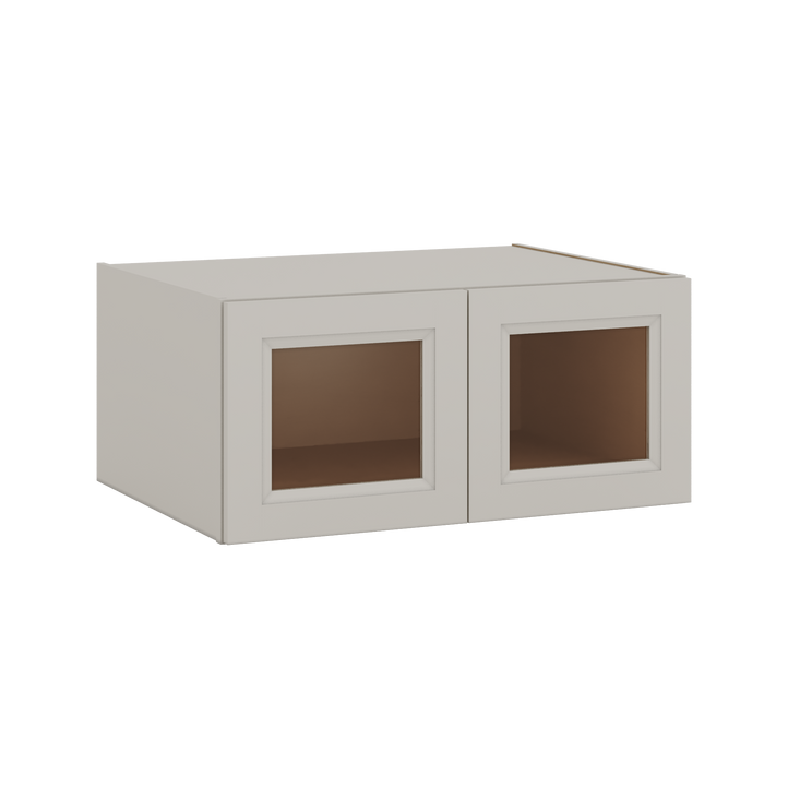 33" Wide Bridge 27LGDS Laguna Gray Double Shaker Wall Glass Cabinet - Double Door 15" Tall - 24" Deep