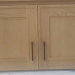 The cabinet has an 1-1/4" Overlay-style face frame made of solid Oak wood. The cabinet sides, bottom, and top are constructed of 1/2″ premium plywood. The face frames and doors are made from 100% Oak hardwood. The face frame and doors are stained and clear coat finish. All other exposed visible areas will require skin finish and trim where necessary.