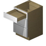 Each three drawer base cabinet 12" - 30" include three drawers with dovetail joinery on the drawer box which each "Overlay" 1-1/4" wider and taller than the opening in the face frame. 1-1/4" Overlay