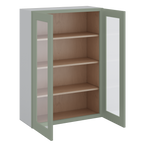 42" Tall Green Shaker 1-1/4" Overlay Wall Glass Cabinet - Double Door 24", 27", 30", 33", 36"
