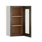 30" Tall Huntington Cinder Double Shaker Wall Glass Cabinet - Single Door 9", 12", 15", 18", 21" WIde