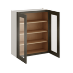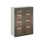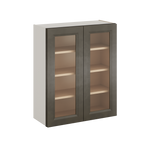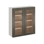 36" Tall Huntington Cinder Double Shaker Wall Glass Cabinet - Double Door 24", 27", 30", 33" & 36" Wide