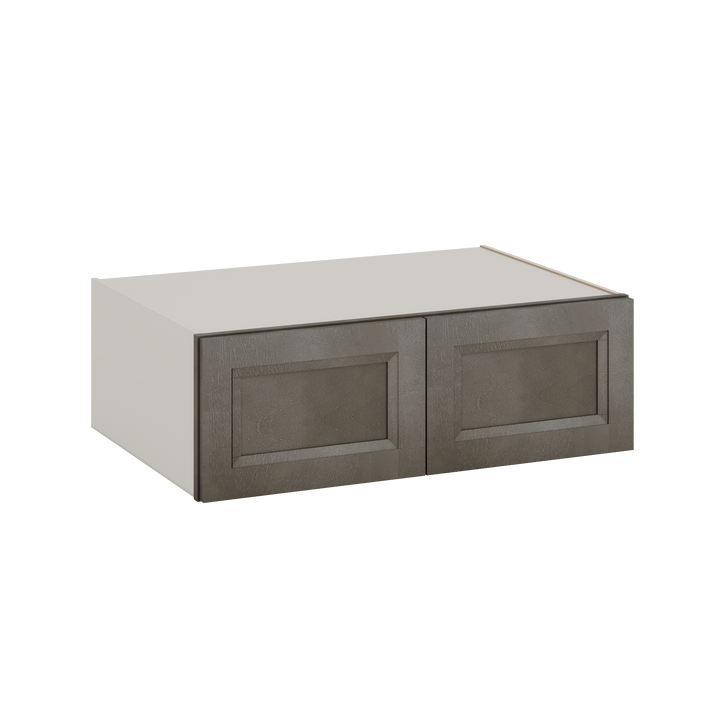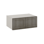 36" Wide by 24" Deep Wall cabinets, select the desired height. Huntington Cinder Double Shaker wall kitchen cabinet RTA (Ready to Assemble). These cabinets are widely used over refrigerators. These cabinets can be "boxed in" with 24" x 96" side panels and a 1-1/2" wide face frame, or placed next to pantry cabinets or against a wall - or - against a filler and then the wall.