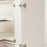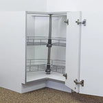 The front of the cabinet has two doors (not soft-close hinges) for comfortable operation and access to rotating shelves.