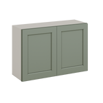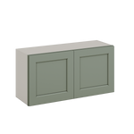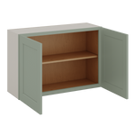 The 14SG Sage Green Shaker 36" bridge cabinet is ideal for positioning over a 36" stove or appliance. With a 1-1/4" overlay and ready to assemble (RTA) design, this cabinet offers streamlined upper storage and a sophisticated look.