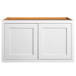 36" Wide Bridge Wall Cabinet - Double Door 12", 15", 18", 21" & 24" Tall Snow White Inset Shaker