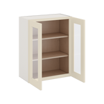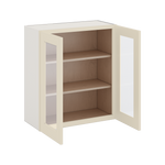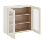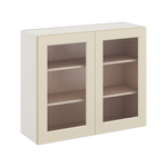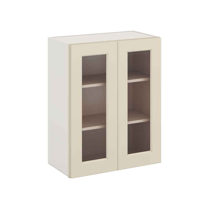 30" Tall Manhattan Cream Shaker 1-1/4" Overlay Wall Glass Cabinet - Double Door 24", 27", 30", 33" & 36" Wide