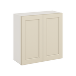30" Tall Manhattan Cream Shaker 1-1/4" Overlay Wall Cabinet - Double Door 24", 27", 30", 33" & 36" Wide