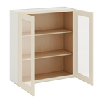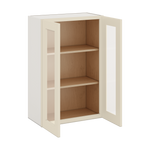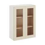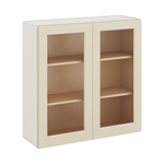36" Tall Manhattan Cream Shaker 1-1/4" Overlay Wall Glass Cabinet - Double Door 24", 27", 30", 33" & 36" Wide