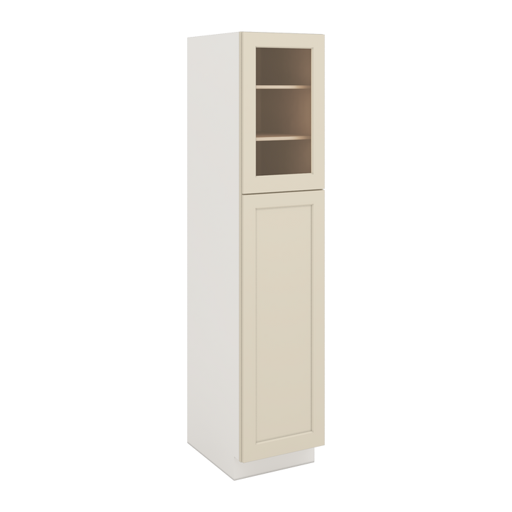 84" Tall Pantry Manhattan Cream Shaker 1-1/4" Overlay Glass Cabinet Available 18", 24", 30" & 36" Wide