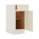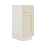 Our 9", 12", 15", 18", and 21" base cabinets, the perfect addition to any kitchen remodel or new construction project. These cabinets feature a 1-1/4" overlay Manhattan Cream shaker design and consist of a single drawer and lower door for ample storage space.