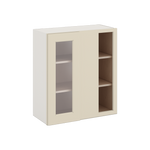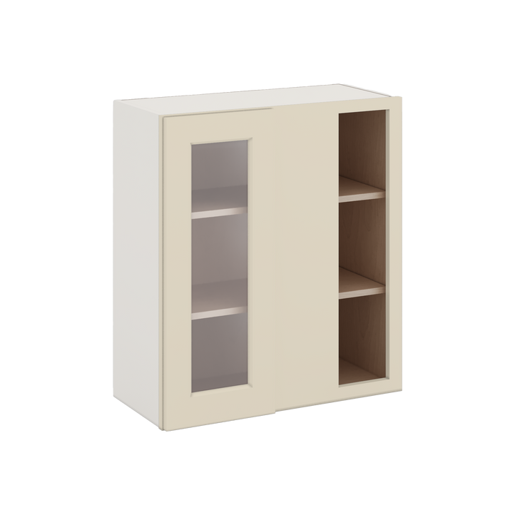 Blind Corner Manhattan Cream Shaker 1-1/4" Overlay Wall Glass Cabinet (left or right) 27" Wide by 30", 36" or 42" Tall