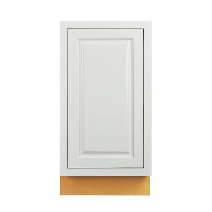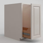 Base Pull Out Trash cabinet is available 18” wide by 24" deep by 34-1/2" tall. Vintage White Inset Raised Panel Trash Pull Out base kitchen cabinet RTA (Ready to Assemble).